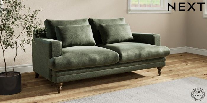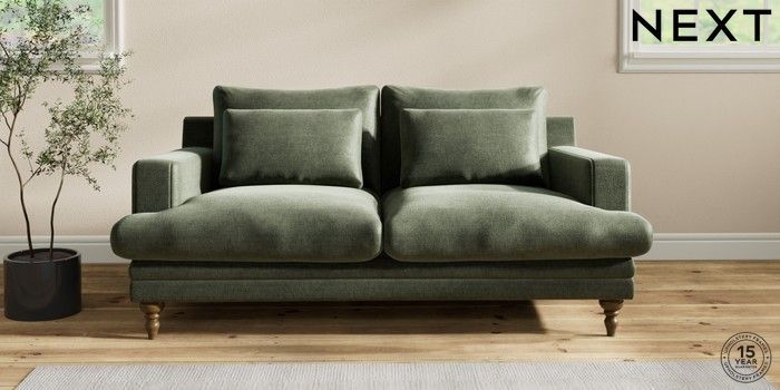 7.2.10 Hutton Deep Relaxed Sit 3 Seater Small Sofa Luxe Chenille Mid Green Country Turned - Mid | Made Click here to use our website with more accessibility support, for example screen readers