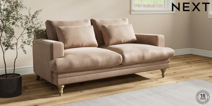 7.2.10 Hutton Deep Relaxed Sit 3 Seater Small Sofa Luxe Chenille Mid Natural Country Turned - Light | Made Click here to use our website with more accessibility support, for example screen readers