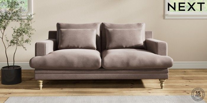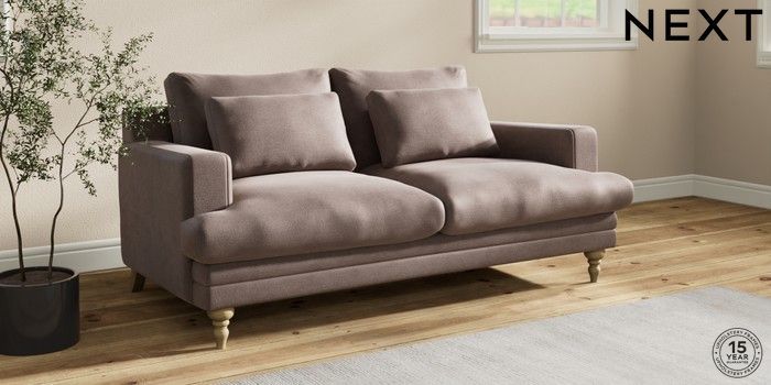 7.2.10 Hutton Deep Relaxed Sit 3 Seater Small Sofa Luxe Chenille Mink Brown Country Turned - Light | Made Click here to use our website with more accessibility support, for example screen readers
