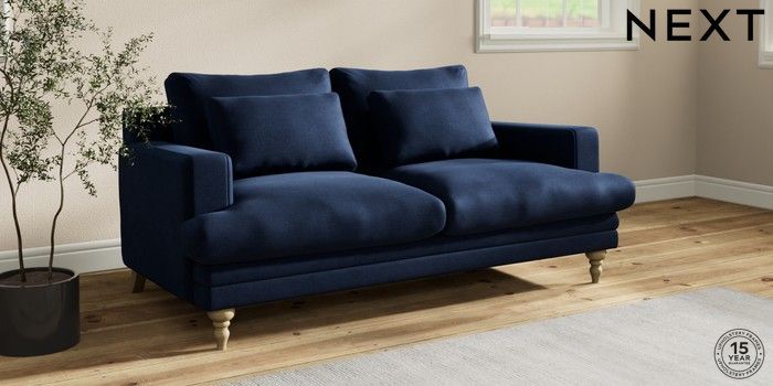 7.2.10 Hutton Deep Relaxed Sit 3 Seater Small Sofa Luxe Chenille Navy Blue Country Turned - Light | Made Click here to use our website with more accessibility support, for example screen readers