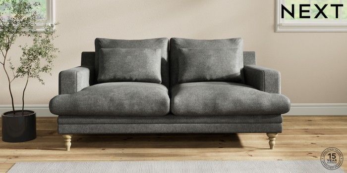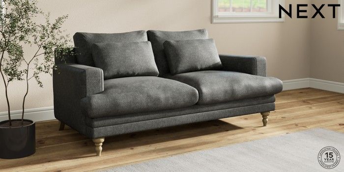 7.2.10 Hutton Deep Relaxed Sit 3 Seater Small Sofa Plush Chenille Dark Grey Country Turned - Light | Made Click here to use our website with more accessibility support, for example screen readers