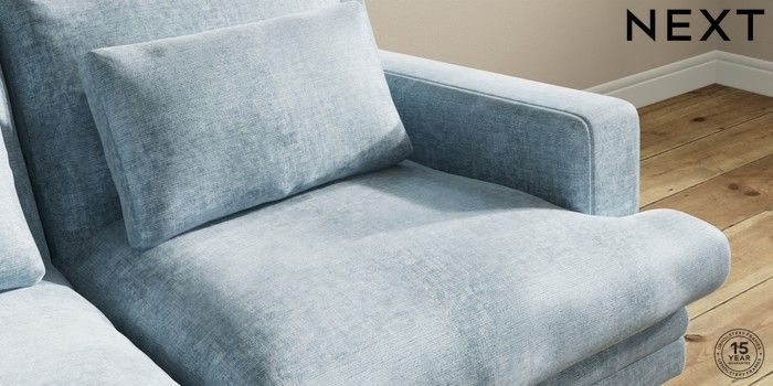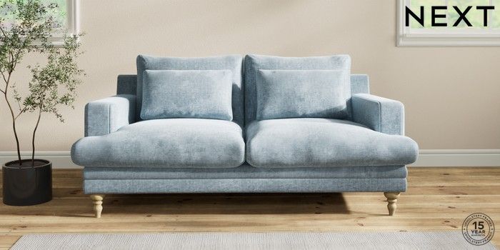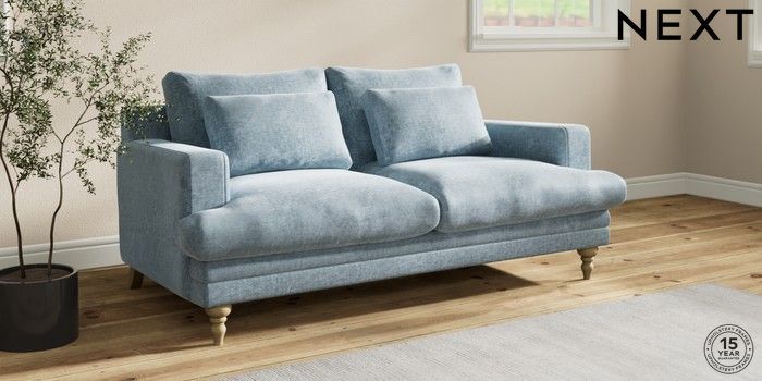 7.2.10 Hutton Deep Relaxed Sit 3 Seater Small Sofa Plush Chenille Light Blue Country Turned - Light | Made Click here to use our website with more accessibility support, for example screen readers