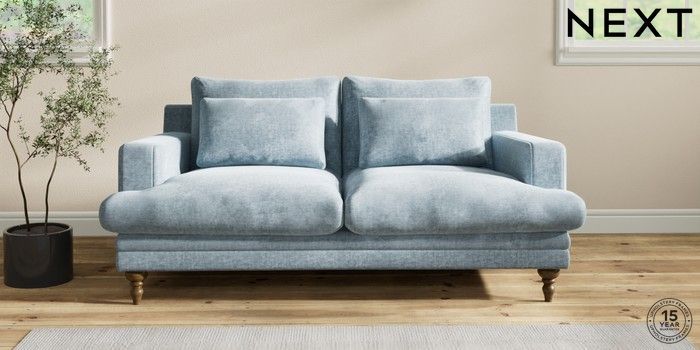 7.2.10 Hutton Deep Relaxed Sit 3 Seater Small Sofa Plush Chenille Light Blue Country Turned - Mid | Made Click here to use our website with more accessibility support, for example screen readers