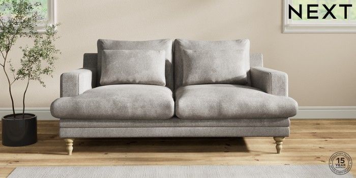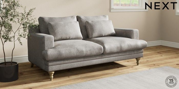 7.2.10 Hutton Deep Relaxed Sit 3 Seater Small Sofa Plush Chenille Light Grey Country Turned - Light | Made Click here to use our website with more accessibility support, for example screen readers