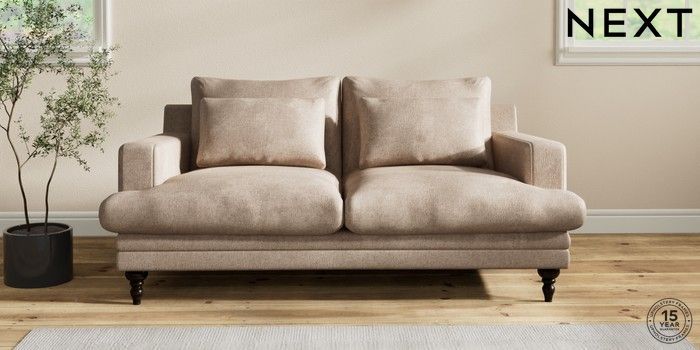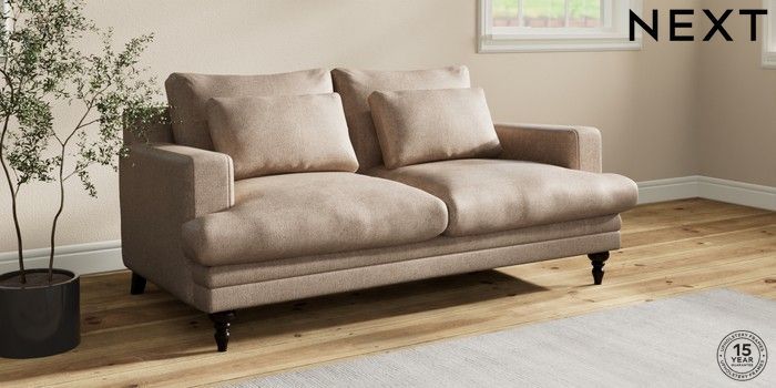 7.2.10 Hutton Deep Relaxed Sit 3 Seater Small Sofa Plush Chenille Mid Natural Country Turned - Dark | Made Click here to use our website with more accessibility support, for example screen readers