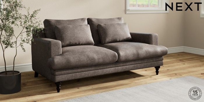 7.2.10 Hutton Deep Relaxed Sit 3 Seater Small Sofa Plush Chenille Mink Brown Country Turned - Dark | Made Click here to use our website with more accessibility support, for example screen readers