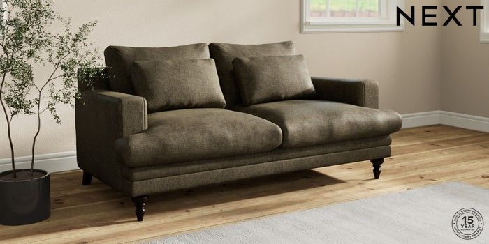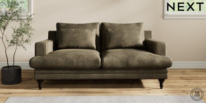 7.2.10 Hutton Deep Relaxed Sit 3 Seater Small Sofa Plush Chenille Moss Green Country Turned - Dark | Made Click here to use our website with more accessibility support, for example screen readers