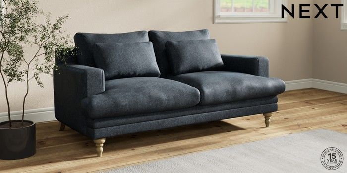 7.2.10 Hutton Deep Relaxed Sit 3 Seater Small Sofa Plush Chenille Slate Blue Country Turned - Light | Made Click here to use our website with more accessibility support, for example screen readers