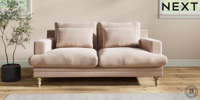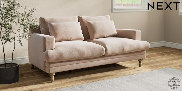 7.2.10 Hutton Deep Relaxed Sit 3 Seater Small Sofa Relaxed Linen Look Mid Natural Country Turned - Light | Made Click here to use our website with more accessibility support, for example screen readers