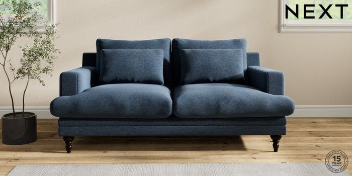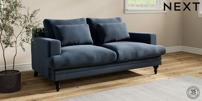 7.2.10 Hutton Deep Relaxed Sit 3 Seater Small Sofa Ripple Chenille Dark Blue Country Turned - Dark | Made Click here to use our website with more accessibility support, for example screen readers