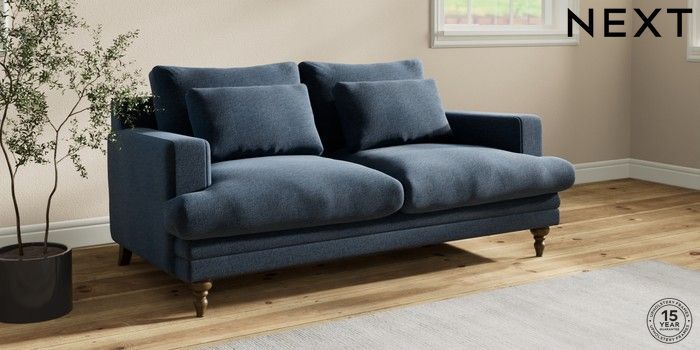 7.2.10 Hutton Deep Relaxed Sit 3 Seater Small Sofa Ripple Chenille Dark Blue Country Turned - Mid | Made Click here to use our website with more accessibility support, for example screen readers