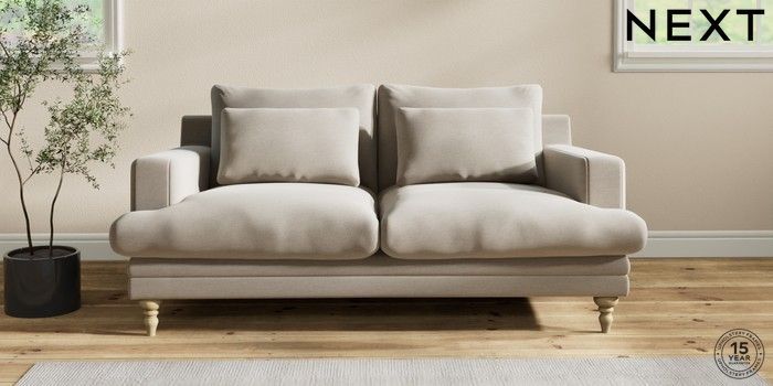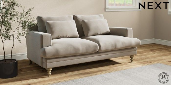 7.2.10 Hutton Deep Relaxed Sit 3 Seater Small Sofa Ripple Chenille Light Natural Country Turned - Light | Made Click here to use our website with more accessibility support, for example screen readers