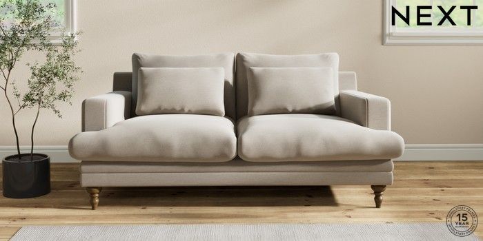 7.2.10 Hutton Deep Relaxed Sit 3 Seater Small Sofa Ripple Chenille Light Natural Country Turned - Mid | Made Click here to use our website with more accessibility support, for example screen readers