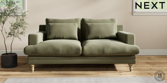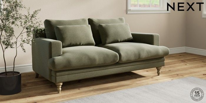 7.2.10 Hutton Deep Relaxed Sit 3 Seater Small Sofa Ripple Chenille Mid Moss Green Country Turned - Light | Made Click here to use our website with more accessibility support, for example screen readers