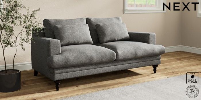 7.2.10 Hutton Deep Relaxed Sit 3 Seater Small Sofa Tweedy Blend Easy Clean Dark Grey Country Turned - Dark | Made Click here to use our website with more accessibility support, for example screen readers