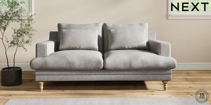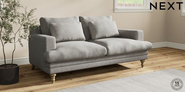 7.2.10 Hutton Deep Relaxed Sit 3 Seater Small Sofa Tweedy Chenille Mid Grey Country Turned - Light | Made Click here to use our website with more accessibility support, for example screen readers
