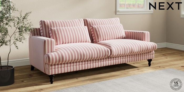 7.2.10 Hutton Deep Relaxed Sit 3 Seater Sofa Bold Chenille Stripe Dark Pink Country Turned - Dark | Made Click here to use our website with more accessibility support, for example screen readers