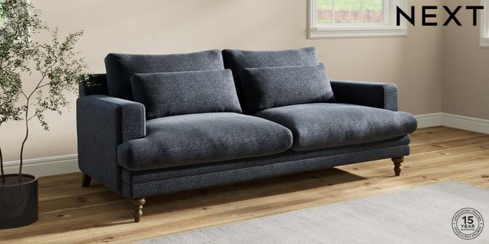 7.2.10 Hutton Deep Relaxed Sit 3 Seater Sofa Boucle Chenille Dark Slate Blue Country Turned - Mid | Made Click here to use our website with more accessibility support, for example screen readers