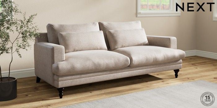 7.2.10 Hutton Deep Relaxed Sit 3 Seater Sofa Boucle Chenille Light Natural Country Turned - Dark | Made Click here to use our website with more accessibility support, for example screen readers