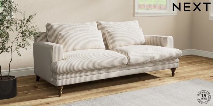 7.2.10 Hutton Deep Relaxed Sit 3 Seater Sofa Chenille Stripe Natural Country Turned - Mid | Made Click here to use our website with more accessibility support, for example screen readers