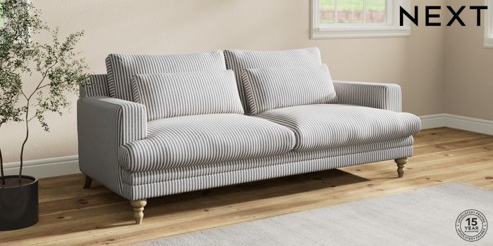 7.2.10 Hutton Deep Relaxed Sit 3 Seater Sofa Chenille Stripe Slate Blue Country Turned - Light | Made Click here to use our website with more accessibility support, for example screen readers