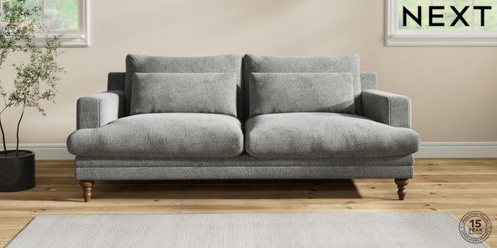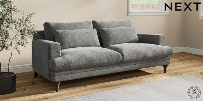 7.2.10 Hutton Deep Relaxed Sit 3 Seater Sofa Chunky Chenille Dark Grey Country Turned - Mid | Made Click here to use our website with more accessibility support, for example screen readers