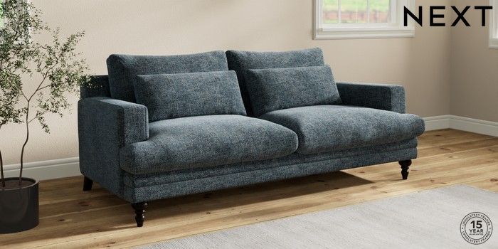 7.2.10 Hutton Deep Relaxed Sit 3 Seater Sofa Chunky Chenille Dark Navy Blue Country Turned - Dark | Made Click here to use our website with more accessibility support, for example screen readers