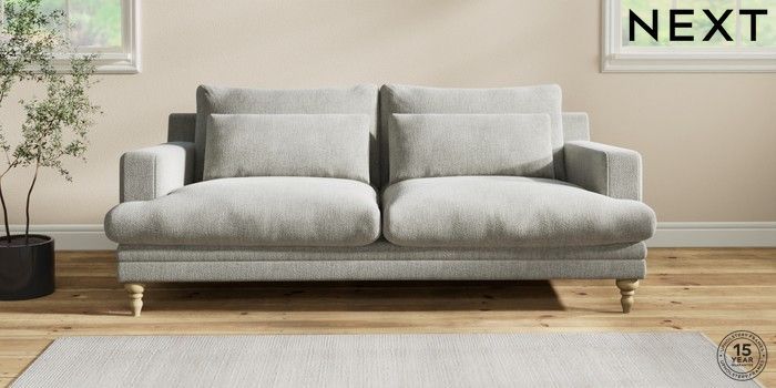 7.2.10 Hutton Deep Relaxed Sit 3 Seater Sofa Chunky Chenille Light Grey Country Turned - Light | Made Click here to use our website with more accessibility support, for example screen readers