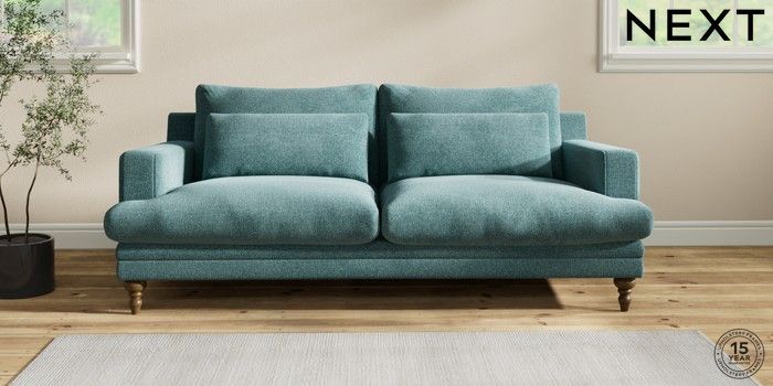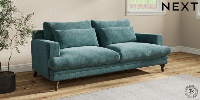 7.2.10 Hutton Deep Relaxed Sit 3 Seater Sofa Chunky Chenille Mid Teal Green Country Turned - Mid | Made Click here to use our website with more accessibility support, for example screen readers