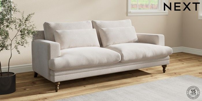 7.2.10 Hutton Deep Relaxed Sit 3 Seater Sofa Chunky Chenille Oyster Country Turned - Mid | Made Click here to use our website with more accessibility support, for example screen readers