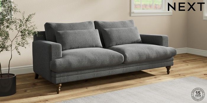 7.2.10 Hutton Deep Relaxed Sit 3 Seater Sofa Chunky Texture Dark Grey Country Turned - Mid | Made Click here to use our website with more accessibility support, for example screen readers