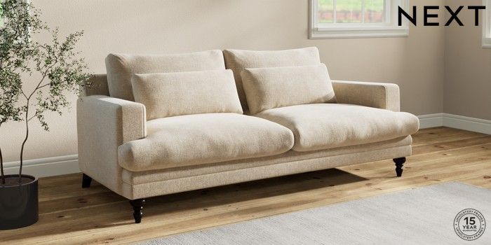 7.2.10 Hutton Deep Relaxed Sit 3 Seater Sofa Chunky Weave Cream Country Turned - Dark | Made Click here to use our website with more accessibility support, for example screen readers