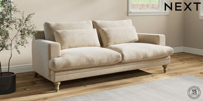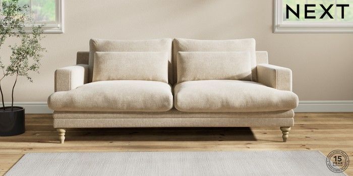7.2.10 Hutton Deep Relaxed Sit 3 Seater Sofa Chunky Weave Cream Country Turned - Light | Made Click here to use our website with more accessibility support, for example screen readers