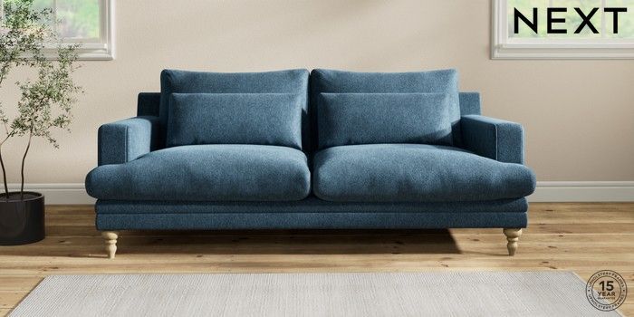 7.2.10 Hutton Deep Relaxed Sit 3 Seater Sofa Cotswold Chenille Dark Blue Country Turned - Light | Made Click here to use our website with more accessibility support, for example screen readers