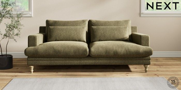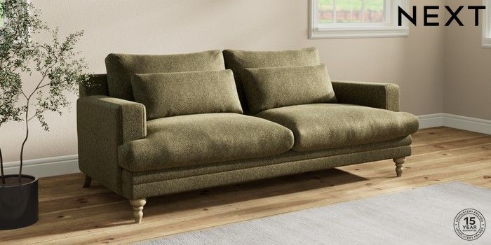 7.2.10 Hutton Deep Relaxed Sit 3 Seater Sofa Cotswold Chenille Dark Green Country Turned - Light | Made Click here to use our website with more accessibility support, for example screen readers