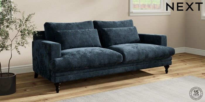 7.2.10 Hutton Deep Relaxed Sit 3 Seater Sofa Distressed Velour Midnight Blue Country Turned - Dark | Made Click here to use our website with more accessibility support, for example screen readers