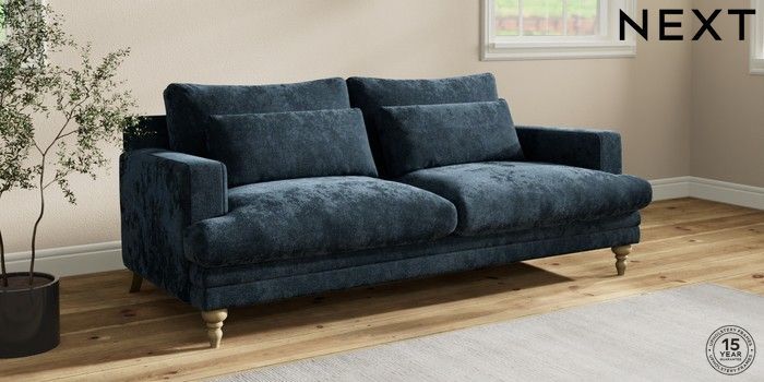 7.2.10 Hutton Deep Relaxed Sit 3 Seater Sofa Distressed Velour Midnight Blue Country Turned - Light | Made Click here to use our website with more accessibility support, for example screen readers