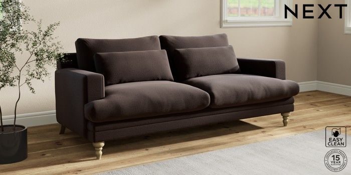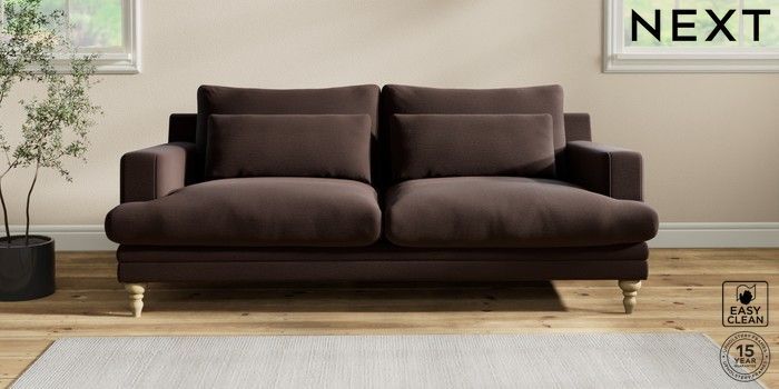 7.2.10 Hutton Deep Relaxed Sit 3 Seater Sofa Fine Chenille Easy Clean Chocolate Brown Country Turned - Light | Made Click here to use our website with more accessibility support, for example screen readers