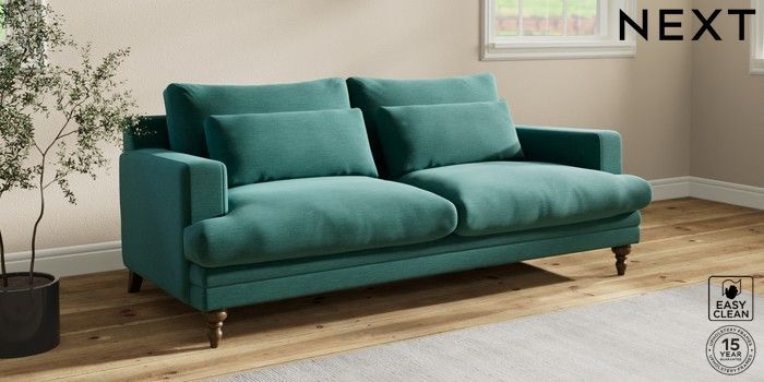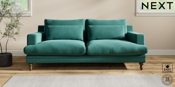 7.2.10 Hutton Deep Relaxed Sit 3 Seater Sofa Fine Chenille Easy Clean Dark Juniper Green Country Turned - Mid | Made Click here to use our website with more accessibility support, for example screen readers