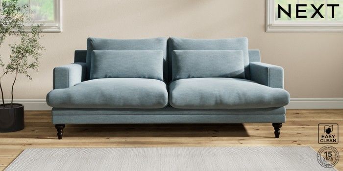 7.2.10 Hutton Deep Relaxed Sit 3 Seater Sofa Fine Chenille Easy Clean Mid Blue Country Turned - Dark | Made Click here to use our website with more accessibility support, for example screen readers