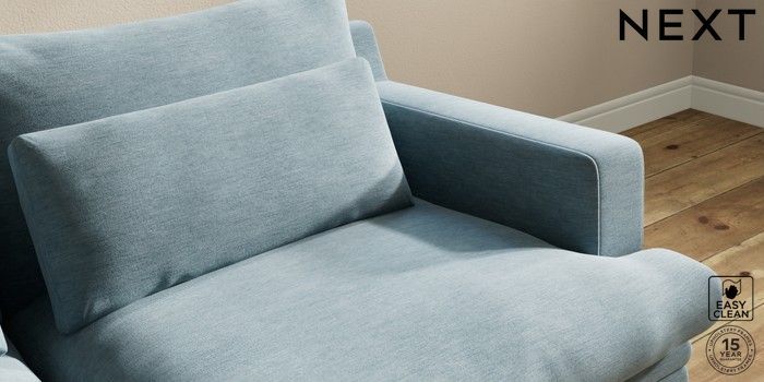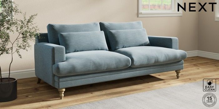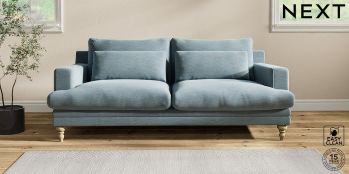 7.2.10 Hutton Deep Relaxed Sit 3 Seater Sofa Fine Chenille Easy Clean Mid Blue Country Turned - Light | Made Click here to use our website with more accessibility support, for example screen readers