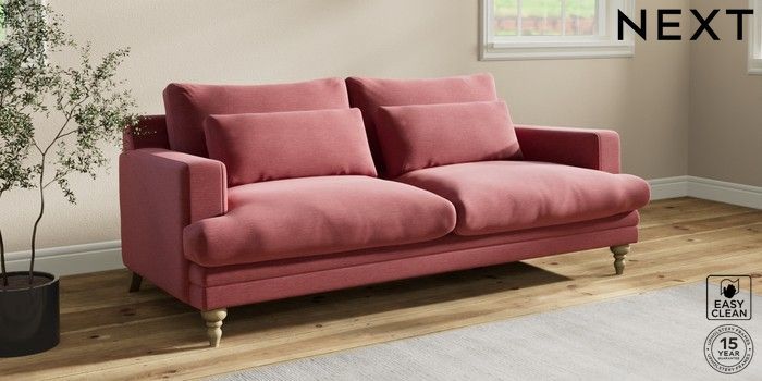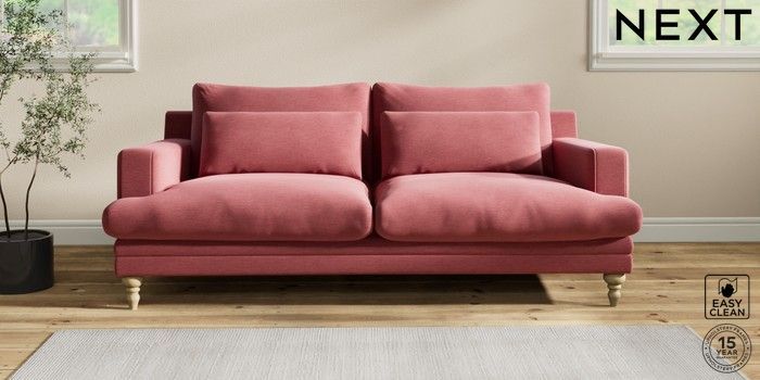 7.2.10 Hutton Deep Relaxed Sit 3 Seater Sofa Fine Chenille Easy Clean Mid Pink Country Turned - Light | Made Click here to use our website with more accessibility support, for example screen readers