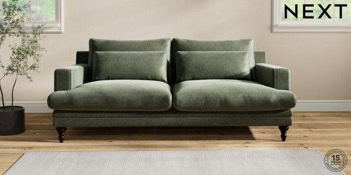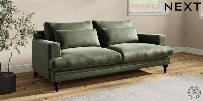 7.2.10 Hutton Deep Relaxed Sit 3 Seater Sofa Luxe Chenille Mid Green Country Turned - Dark | Made Click here to use our website with more accessibility support, for example screen readers