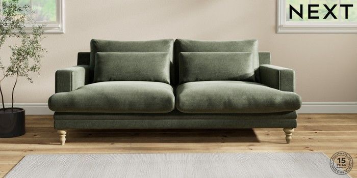 7.2.10 Hutton Deep Relaxed Sit 3 Seater Sofa Luxe Chenille Mid Green Country Turned - Light | Made Click here to use our website with more accessibility support, for example screen readers