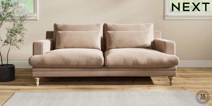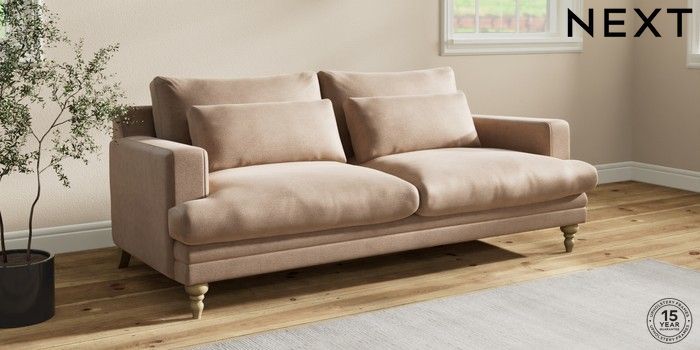 7.2.10 Hutton Deep Relaxed Sit 3 Seater Sofa Luxe Chenille Mid Natural Country Turned - Light | Made Click here to use our website with more accessibility support, for example screen readers