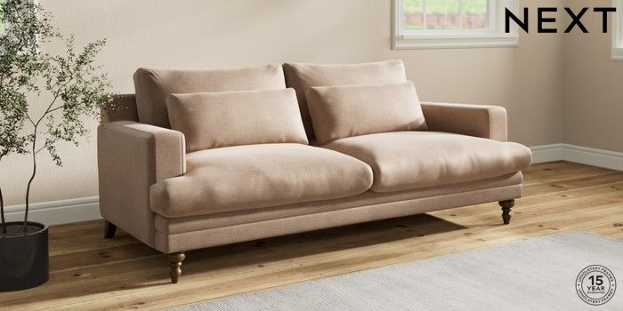 7.2.10 Hutton Deep Relaxed Sit 3 Seater Sofa Luxe Chenille Mid Natural Country Turned - Mid | Made Click here to use our website with more accessibility support, for example screen readers