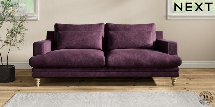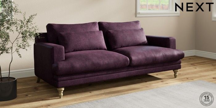 7.2.10 Hutton Deep Relaxed Sit 3 Seater Sofa Plush Chenille Dark Plum Purple Country Turned - Light | Made Click here to use our website with more accessibility support, for example screen readers