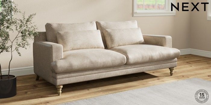 7.2.10 Hutton Deep Relaxed Sit 3 Seater Sofa Plush Chenille Light Natural Country Turned - Light | Made Click here to use our website with more accessibility support, for example screen readers