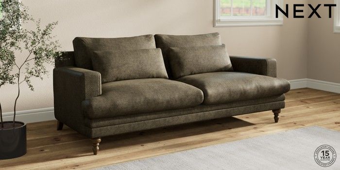 7.2.10 Hutton Deep Relaxed Sit 3 Seater Sofa Plush Chenille Moss Green Country Turned - Mid | Made Click here to use our website with more accessibility support, for example screen readers