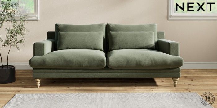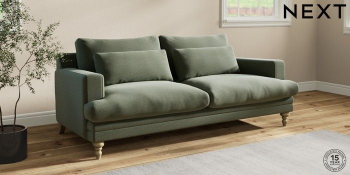7.2.10 Hutton Deep Relaxed Sit 3 Seater Sofa Relaxed Linen Look Dark Green Country Turned - Light | Made Click here to use our website with more accessibility support, for example screen readers